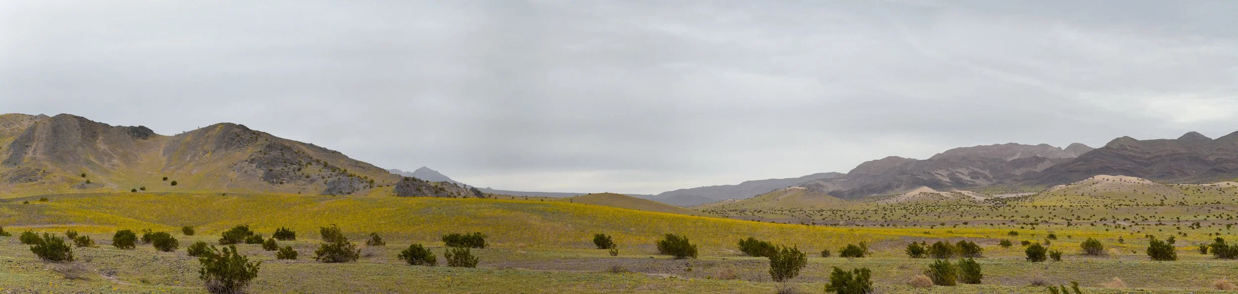 Desert Sunflower cover the alluvial fan of the Ibex Hills near Superior Mine Road.